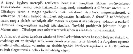 A Cifrakapu (és Cifrapart) utcákra vonatkozó megállni tilos táblákkal kapcsolatos önkormányzati válasz vonatkozó részlete