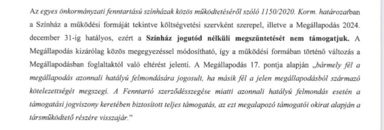 Részlet az EMMI Kultúráért Felelős Államtitkárságának szerkesztőségünk birtokába került leveléből