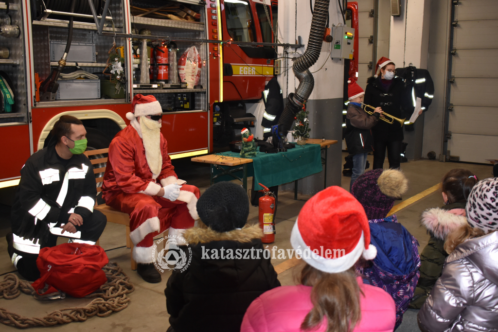 Tizennyolc általános iskolás gyermek látogatott el az egri hivatásos tűzoltóságra Mikulás napján.