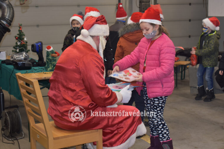 Az ismertetőt követően a gyermekek megtekintették a tűzoltó autókat és azok felszereléseit. Az egri tűzoltók egy próbariasztást is bemutattak nekik, mely során a Tűzoltó Mikulás is megérkezett, és mindenkit meglepett egy ajándékcsomaggal. Az iskolások nagy örömmel fogadták a Nagyszakállút, széles mosollyal az arcukon vették át a meglepetés csomagokat, sok gyermek énekelt, volt, aki verssel, volt aki pedig trombitaszóval köszöntötte. Végül a gyermekek nagy örömmel adták át kedves alkotásaikat a Tűzoltó Mikulás bácsinak.
