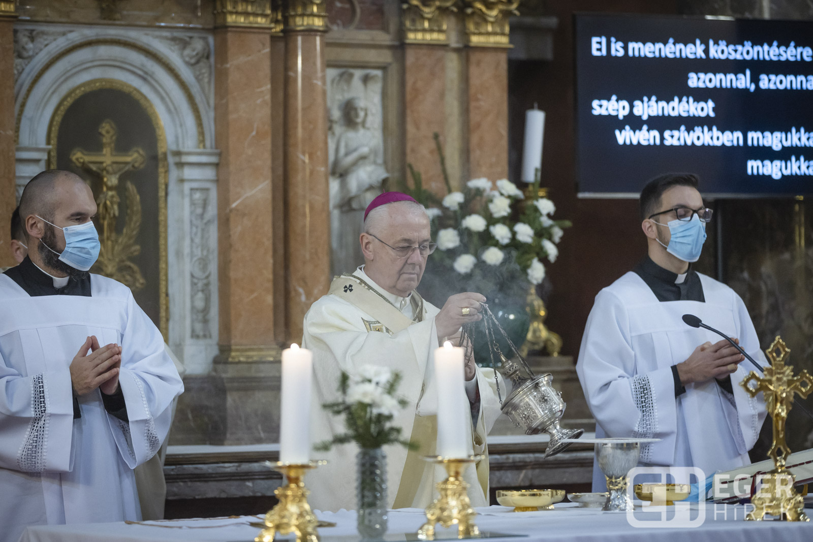 A múlt évben a járványhelyzet nem tette lehetővé, hogy hagyományos értelemben vett éjféli szentmisét tartsanak az Egri Főegyházmegyében, ezért idén nagy várakozás övezte a szertartást az egri bazilikában is.