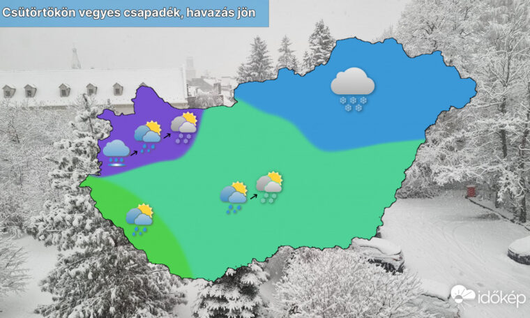 Csütörtökön ónos eső, havazás, hózáporok jönnek, a lehűléssel változik a csapadék halmazállapota. Megmaradó hóra északon, északkeleten van több esély.