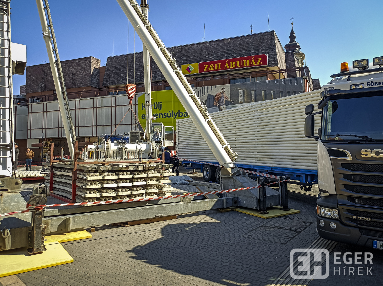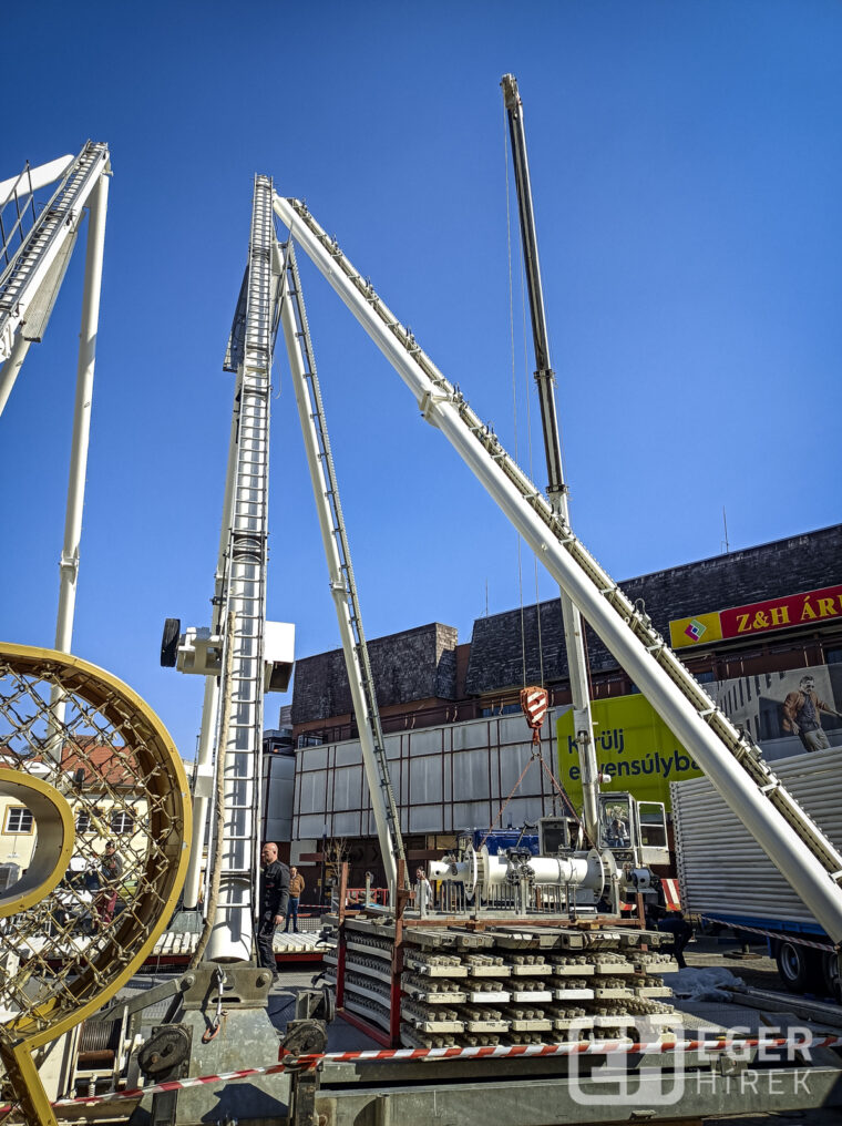 Mint arról a napokban beszámoltunk, szétszerelték és elszállították az “egri” óriáskereket, melyet nyári, nyugat-európai fesztiválokon fognak majd felállítani. Aki szeretné még utoljára látni – igaz darabokban, kamionok platóján -, az megteheti a Felsőtárkány felé vezető út melletti ipari parkban, ahol szombaton még látni lehetett azokat a teherautókat, melyek hamarosan új helyére szállítják majd a tér korábbi látványosságát.