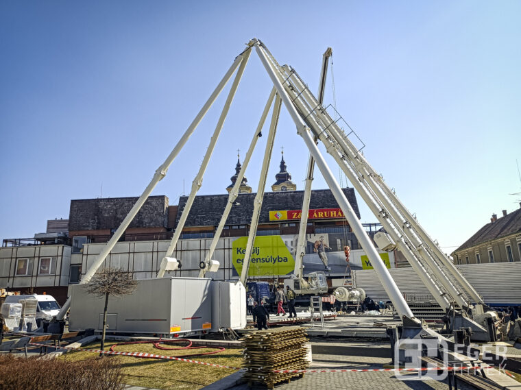 Közben megérkezett az új, bár szerényebb méretekkel rendelkező kerék, amely a következő hónapokban lesz majd a Gárdonyi tér vendége. Mutatjuk az összeszerelés néhány pillanatát.