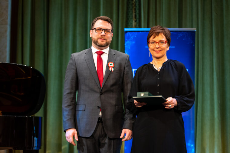 Dr. Gábos Judit zongoraművész, az Eszterházy Károly Katolikus Egyetem Bölcsészettudományi és Művészeti Kara Zenei Intézetének egyetemi tanára, volt tanszékvezetője részére, nemzetközi szinten is jelentős, a hazai kulturális életet gazdagító művészi és zenepedagógusi pályája, valamint magas szintű tanszékvezetői munkája elismeréseként a Magyar Érdemrend Lovagkeresztje kitüntetést vehett át Schanda Tamástól, az Innovációs és Technológiai Minisztérium miniszterhelyettesétől.