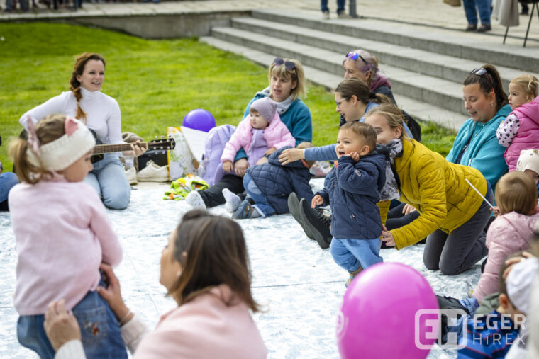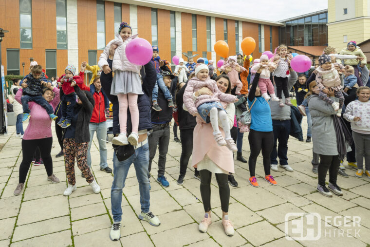 Az egri eseményt a Babakocsi-fitnesz bemutató indította Katonáné Fekete Tímea vezényletével, majd Herczeg Flóra tartott egy ringatót a kicsiknek. Ezután – pontban 11 órakor – megtörtént a gyerekemelés, a jelképes mozzanat.