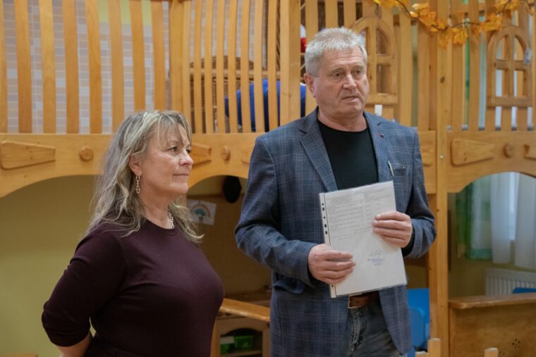 Pál Edina és Földvári Győző az óvodában tartott sajtótájékoztatón, november 17-én délelőtt (Cikkünk fotói: Facebook, Eger Város Hivatalos Oldala)