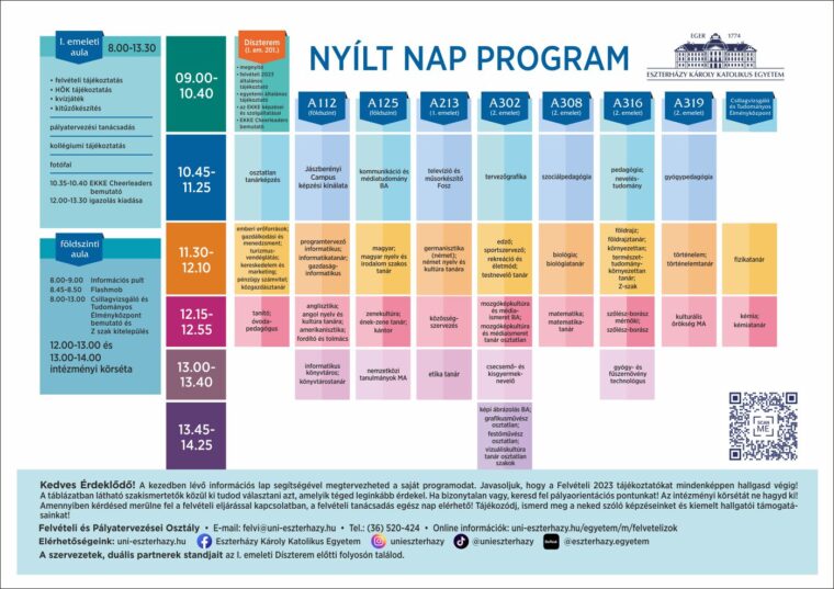 December 6-án az Eszterházy Károly Katolikus Egyetem egri épülete is megnyitja kapuit leendő hallgatói előtt, így az érdeklődőknek lehetőségük nyílik arra, hogy az intézmény falai között személyesen, testközelből tapasztalják meg, hogy sikeres felvételi esetén mi várhat rájuk a következő időszakban.