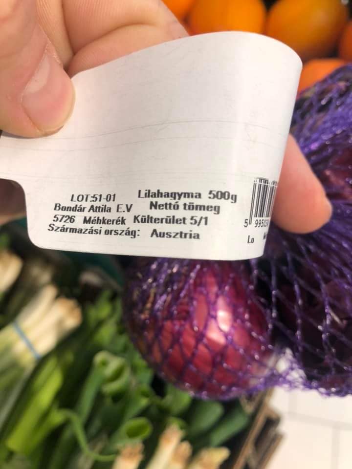 „A Penny álmagyar termékeket árul! Itt ez a lilahagyma, amin rajta van a magyar zászlós címke, de mégis Ausztriából jött. Most akkor hogy is van ez? Remélem csak arról van szó, hogy ez a Bondár Attila egy Ausztriában élő magyar termelő, mert akkor fátylat rá, de ha hamis, magyarosított termékeket árulnak, akkor az a vásárlók megtévesztése. Szóval hogy is van ez, Penny?!”
