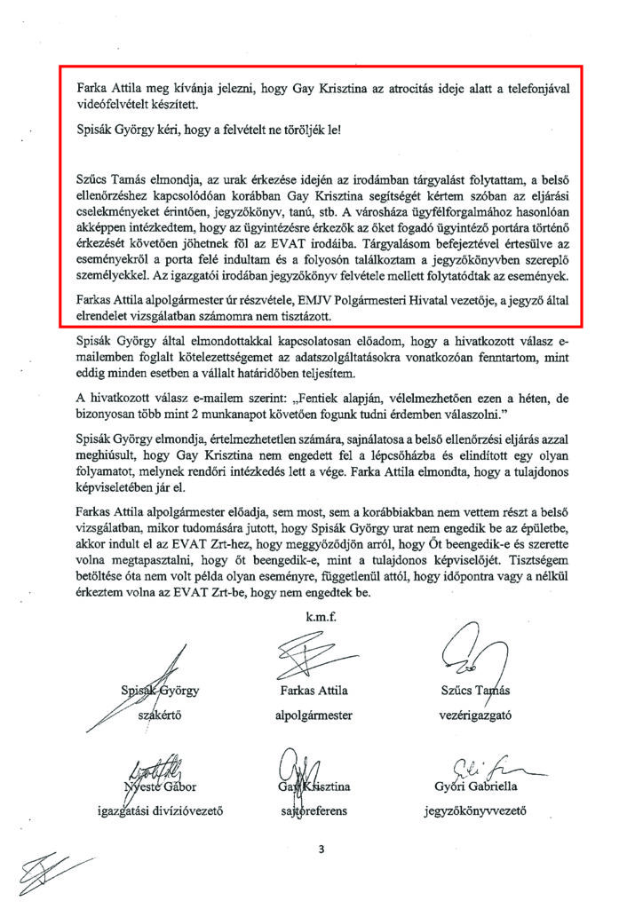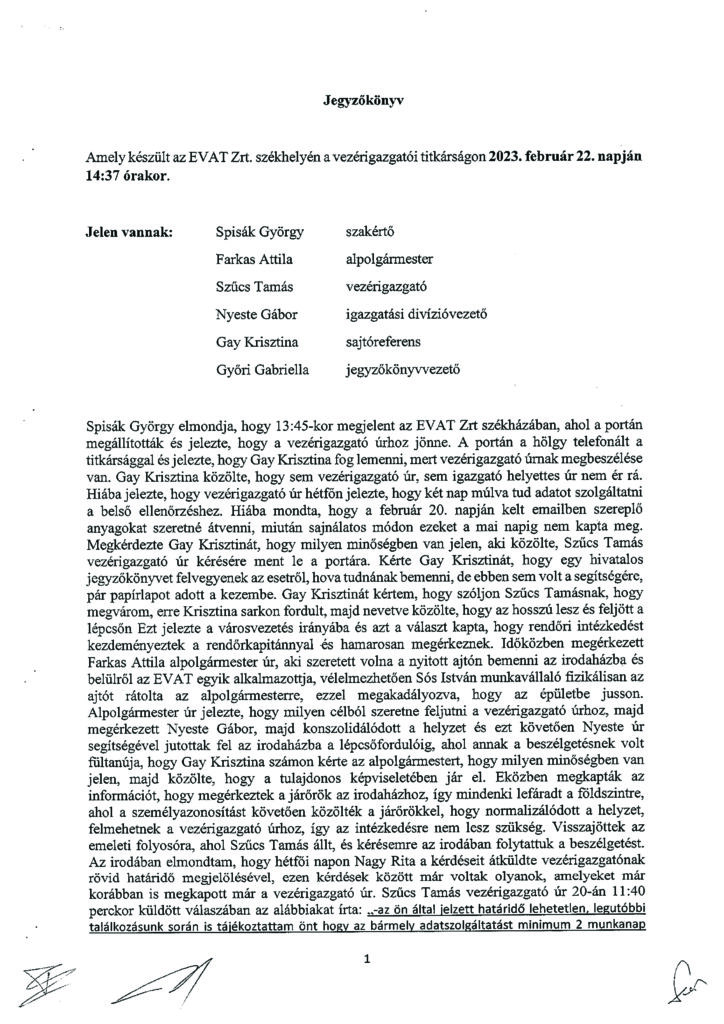 Felmerül a kérdés, vajon miért nem az egész, változtatások nélküli jegyzőkönyvet adta közre a polgármester? Miért kellett abból bizonyos részeket kitakarni? A kérdésre a választ nem tudjuk, csak sejtjük, ezért a portál megkereste az EVAT Zrt-t, hogy közvetlenül tőlük kérjék a jegyzőkönyv eredeti, változtatás nélküli verzióját.