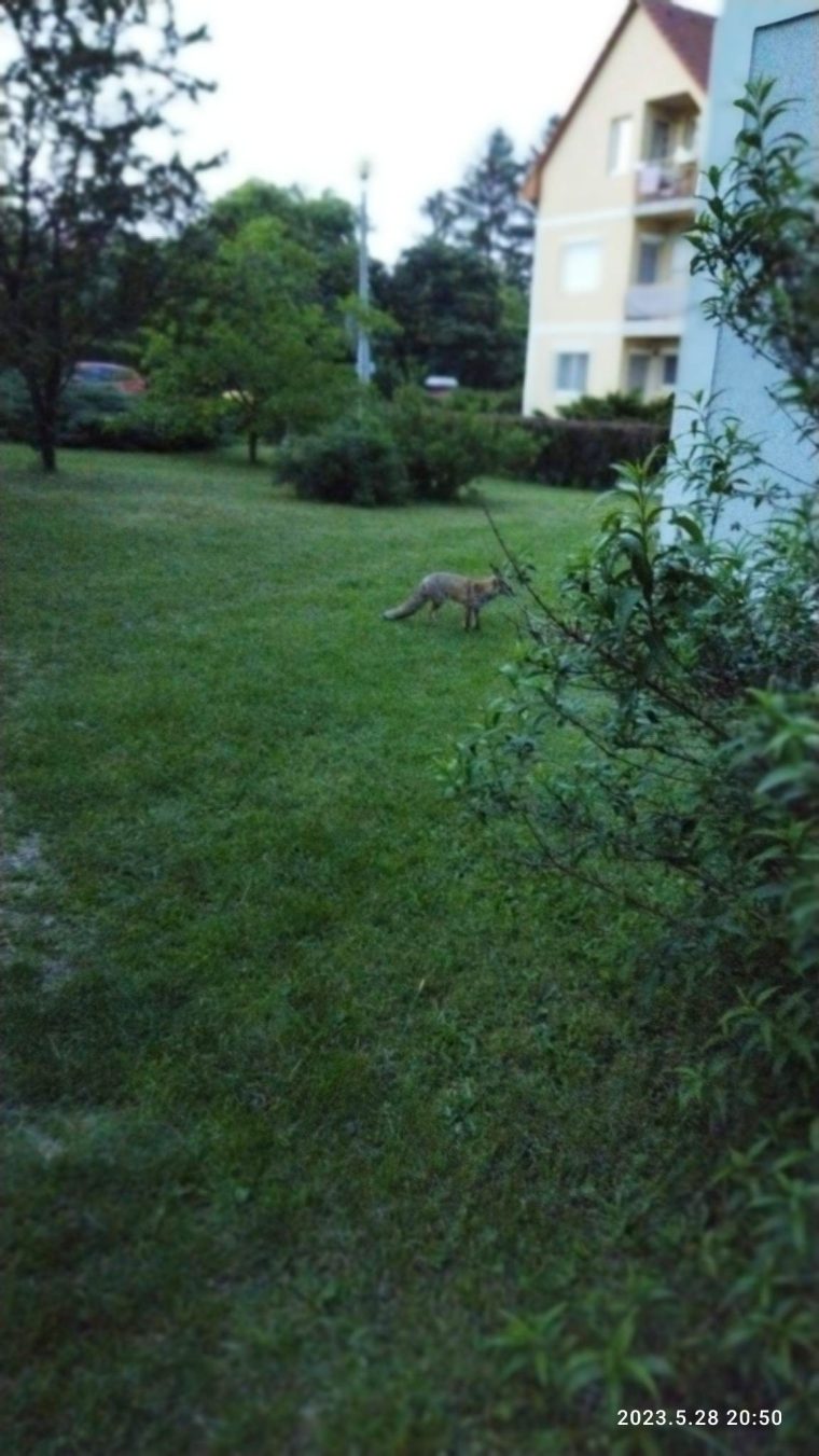 Varga Judit pünkösdvasárnapi fotója a házak között járkáló rókáról