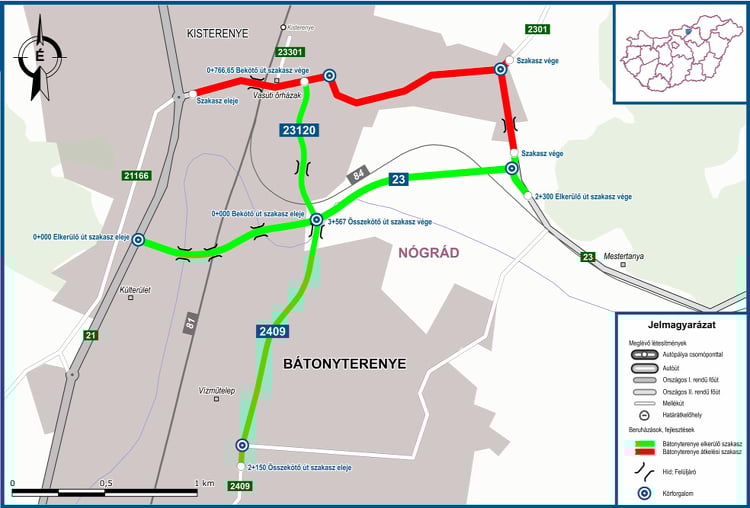 Régen várt projektben adták át koronaélen belül Bátonyterenye 2,3 kilométer hosszú, 2×1 sávos elkerülőjét (Kisterenye és Nagybátony közvetlen összeköttetését valósították meg így, három körforgalommal), valamint a Nógrád vármegyei város 2,19 kilométeres, 2×1 sávos észak-déli összekötő útját. Mindkettőt a Colas Út Zrt. és a HE-DO alakította ki.