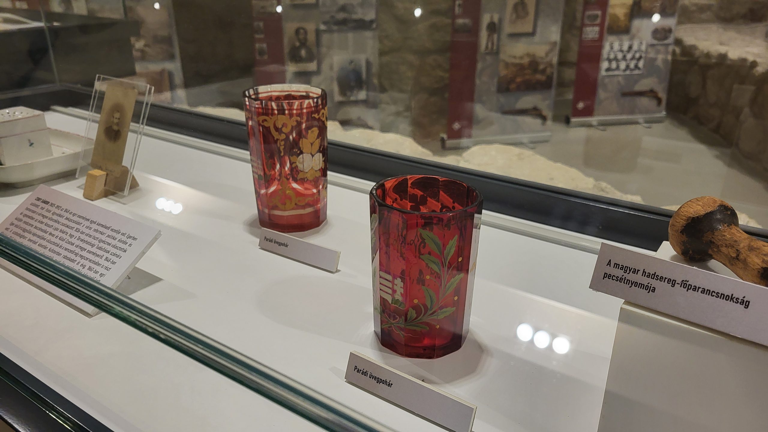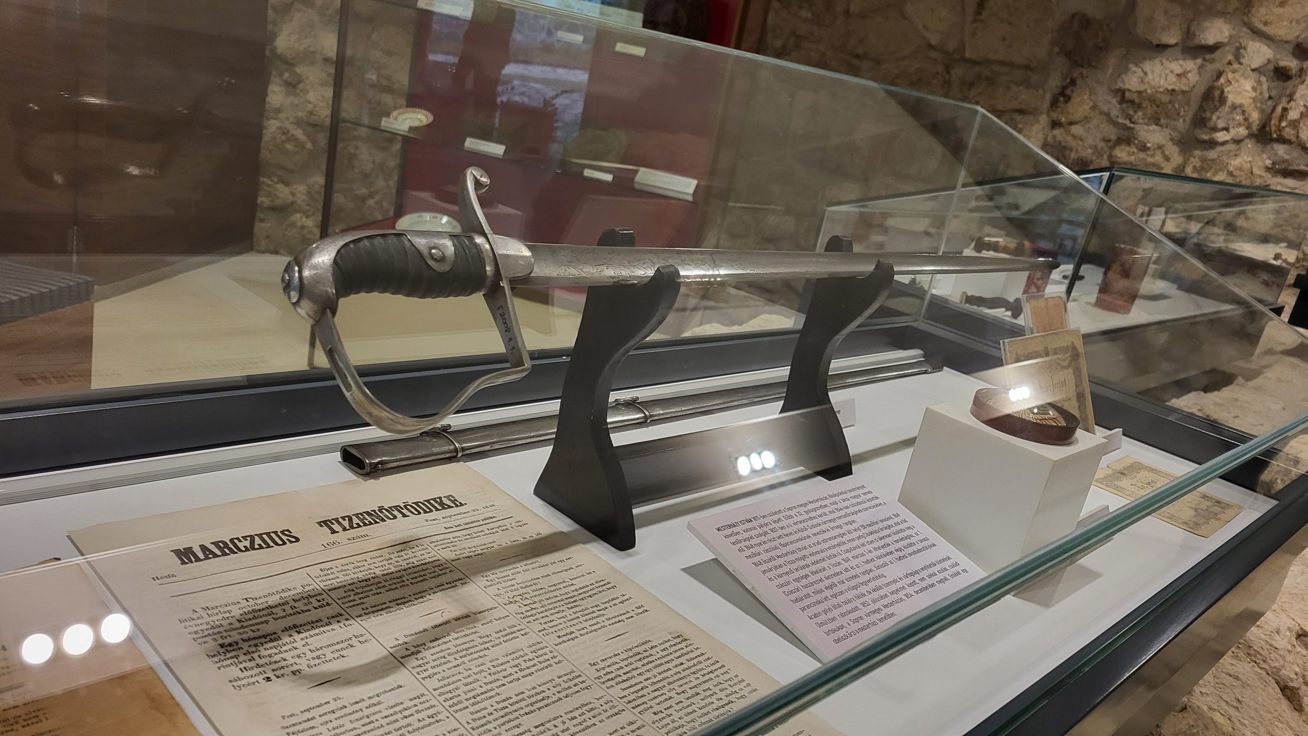 A kiállításhoz múzeumpedagógiai foglalkozások is kapcsolódnak, és talán a legszebb műtárgyak, amelyeket kiemelhetek, az a kokárda, amelyet a 48-as márciusi események idején Egerben viseltek, illetve azok a Kossuth levelek, amelyek eredeti, Kossuth által írt levelek a birtokunkban vannak, de bekerült a tárlatba a kápolnai csata körülményeire vonatkozóan nagyon fontos információkat nyújtó levelezés is, illetve Mesterházy István díszszablyája is. Csiky Sándornak például az írókészletét vagy zsebkését is láthatjuk. Ő Eger polgármestere is volt, illetve országgyűlési képviselője, és a reform ellenzék egyik nagyon fontos alakja a korszakban. Knézich Károlyra is utalhatnék, aki ugyan nem egri születésű, de Egerben nősült, és a századával itt állomásozott