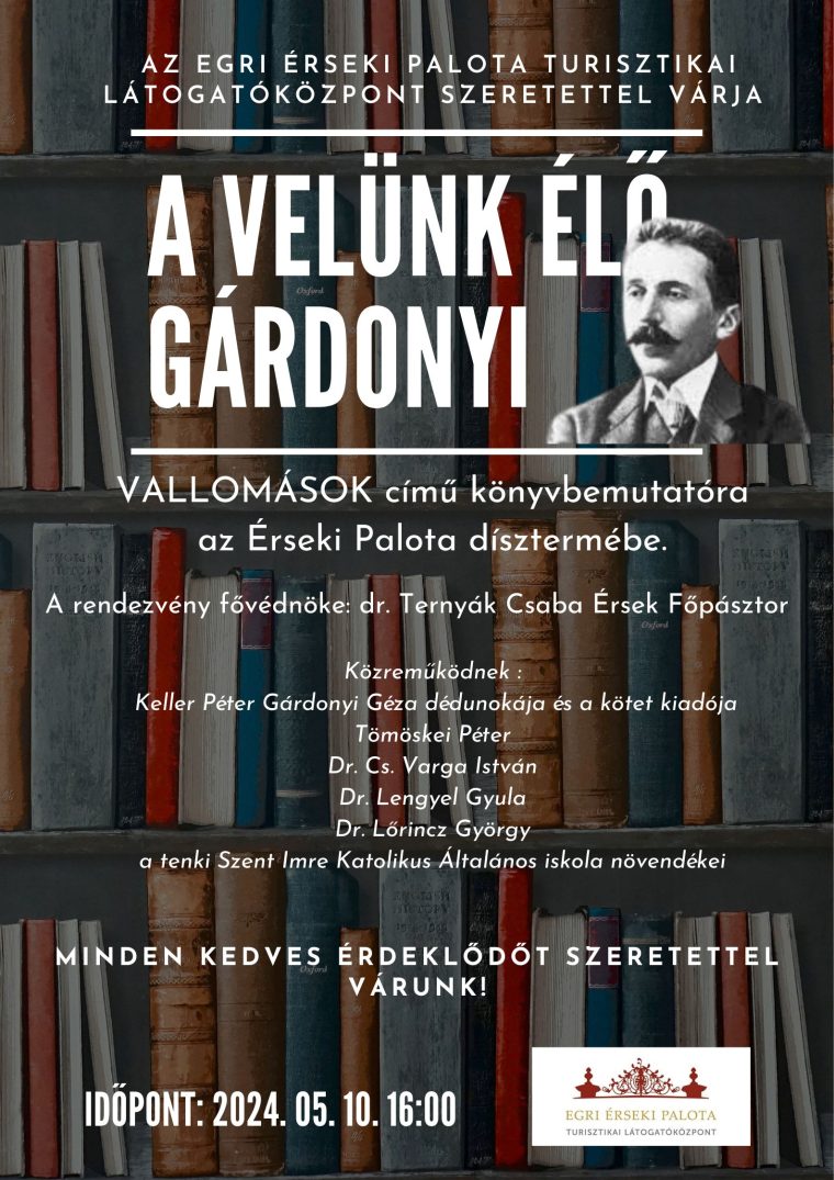 Keller Péter a „A velünk élő Gárdonyi – Vallomások” című könyv bemutatójára érkezik, mint a kötet kiadója. Várnak minden érdeklődőt pénteken 16 órára az Érseki Palotába.