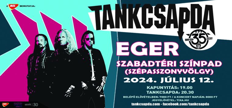 Jegyek már csak korlátozott számban kaphatóak a https://tixa.hu/tcs-eger-2024 linken, az Agria Mozi jegypénztárában, nyitvatartási időben, kizárólag készpénzes fizetéssel és a helyszínen a koncert napján 19:00 órától.