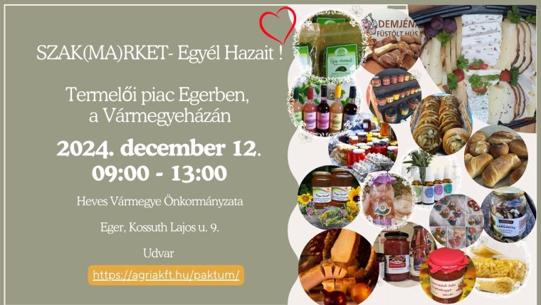 December 12-én, csütörtökön 09:00-13:00 óra között ismét termelői piaccá változik a Vármegyeháza udvara.