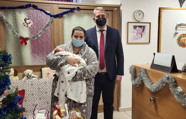 Január elsején megszületett az új esztendő első egri babája a Heves Vármegyei Markhot Ferenc Kórházban, Panna Rózát és anyukáját köszöntötte a város nevében Vágner Ákos polgármester.