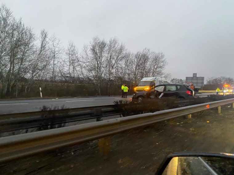 Hat gépjármű ütközött össze az M3-as autópálya 54-es kilométerszelvényénél, Hatvan térségében, a Nyíregyháza felé vezető oldalon.
