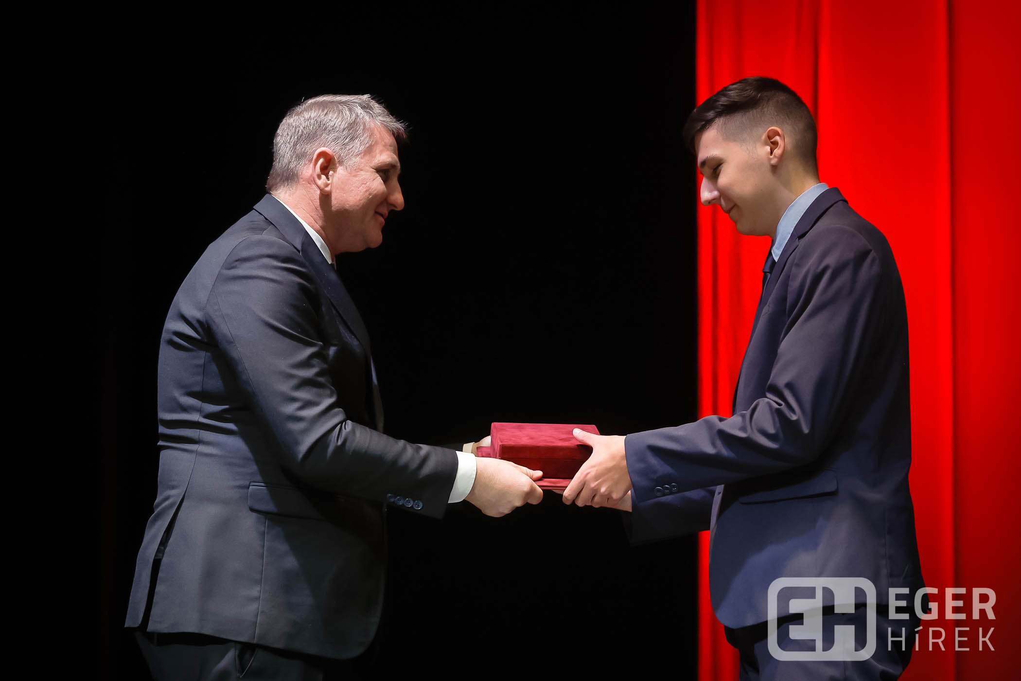 A díszünnepség keretében átadták Eger város kitüntetéseit is, amellyel az önkormányzat idén is elismerte azoknak a pedagógusoknak, sportolóknak, diákoknak és szakembereknek a munkáját, akik kiemelkedő tevékenységükkel öregbítik a város hírnevét.