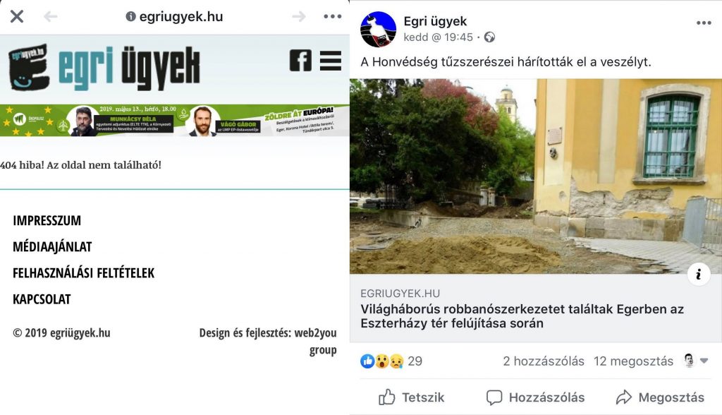 Emlékezetes pánikkeltésük volt az utóbbi időben az is, hogy “bombát találtak az Eszterházy tér felújításakor.” Ez is azt bizonyítja, hogy a folyamatosan fogyatkozó táboruk és komment szekciójuk nélkül létezni képtelen Egri Ügyek ma már nem tudja magára máshogyan felhívni a figyelmet.